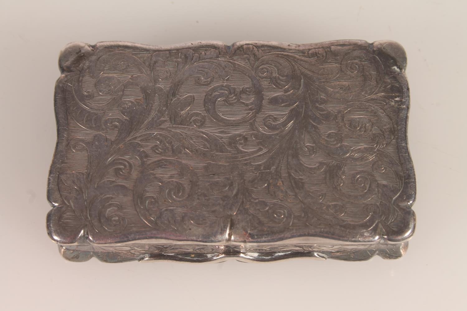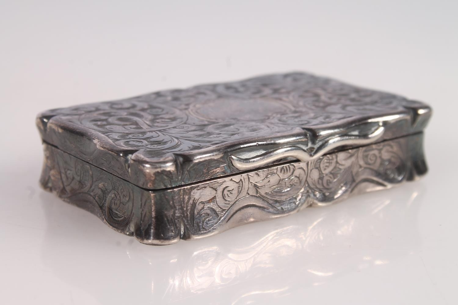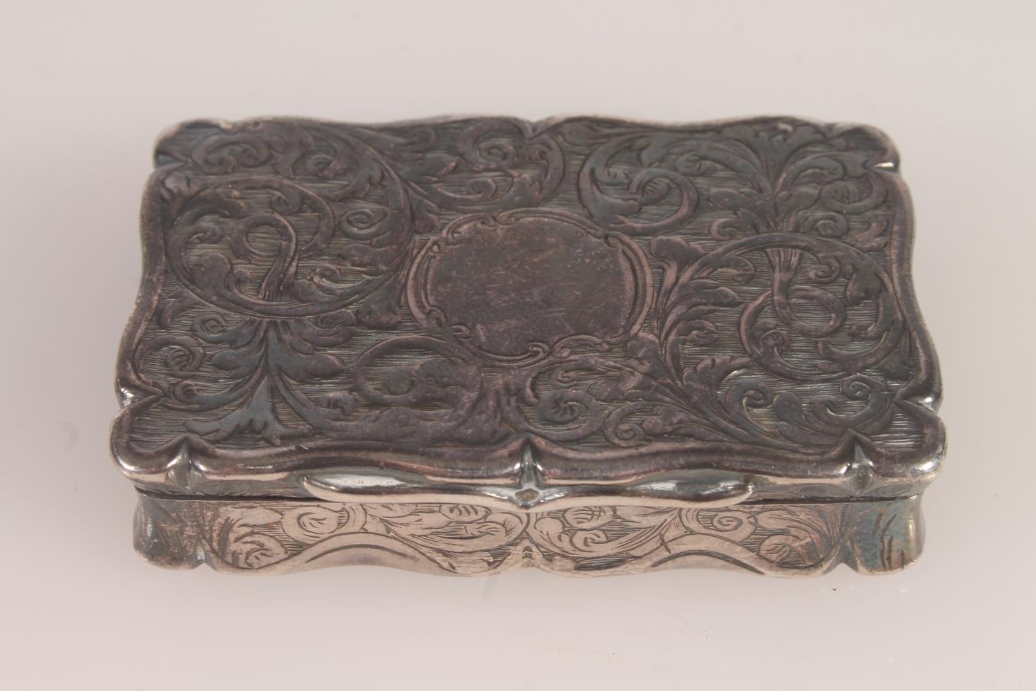 Victorian silver snuff box. with shaped edges and scrolling ...