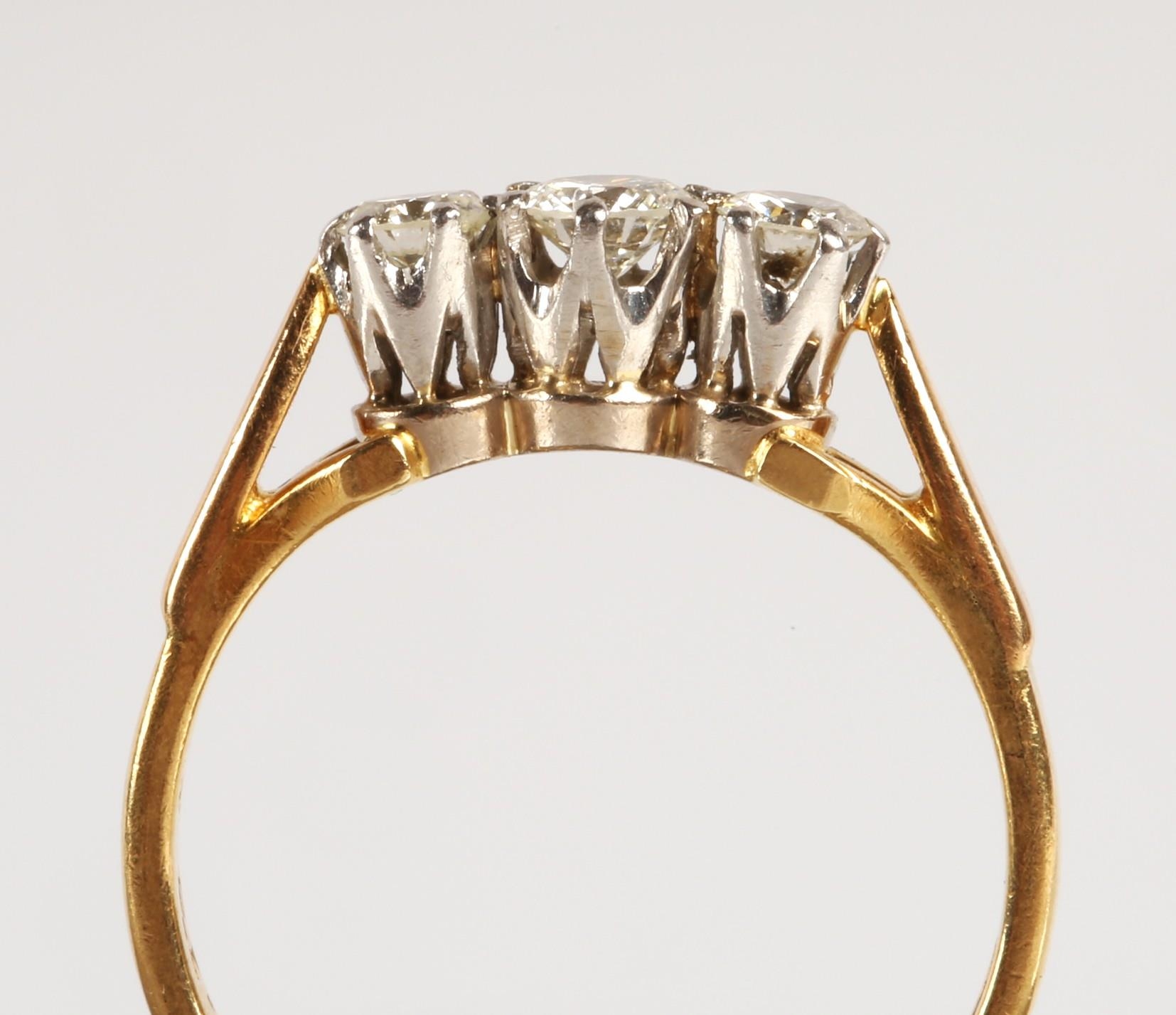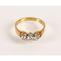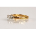Ladies 18ct yellow gold diamond three stone ring, set with t...