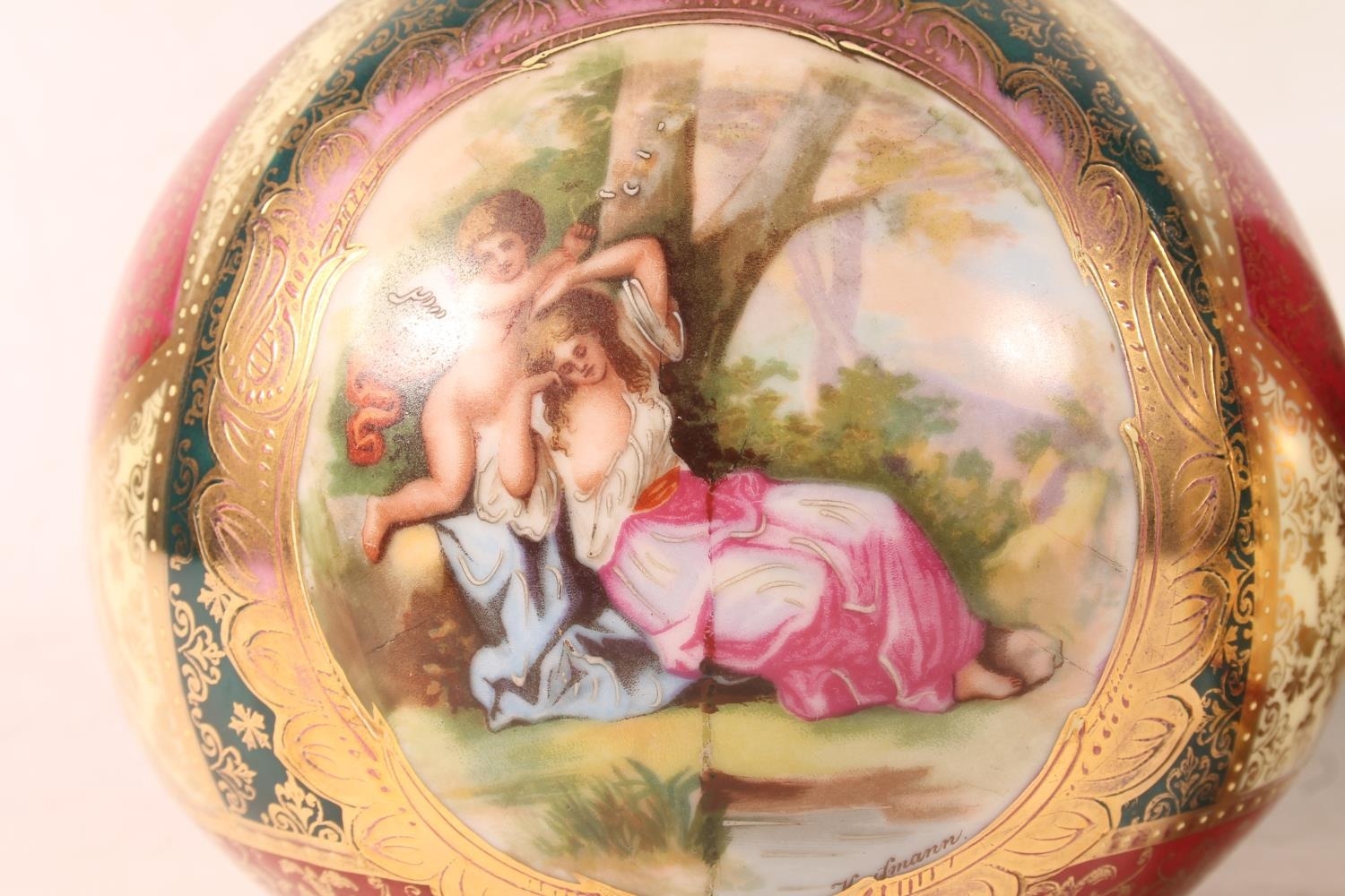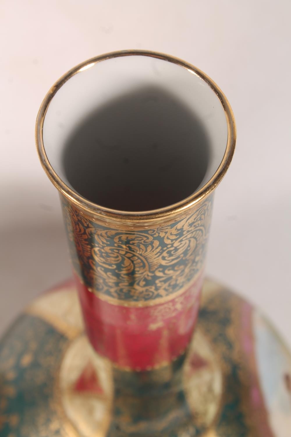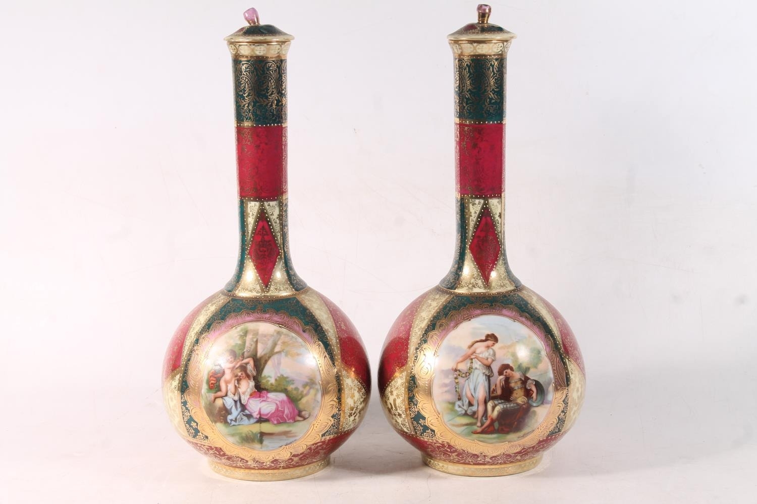 Pair of Austrian Vienna style porcelain bottle vases, 35cm h...