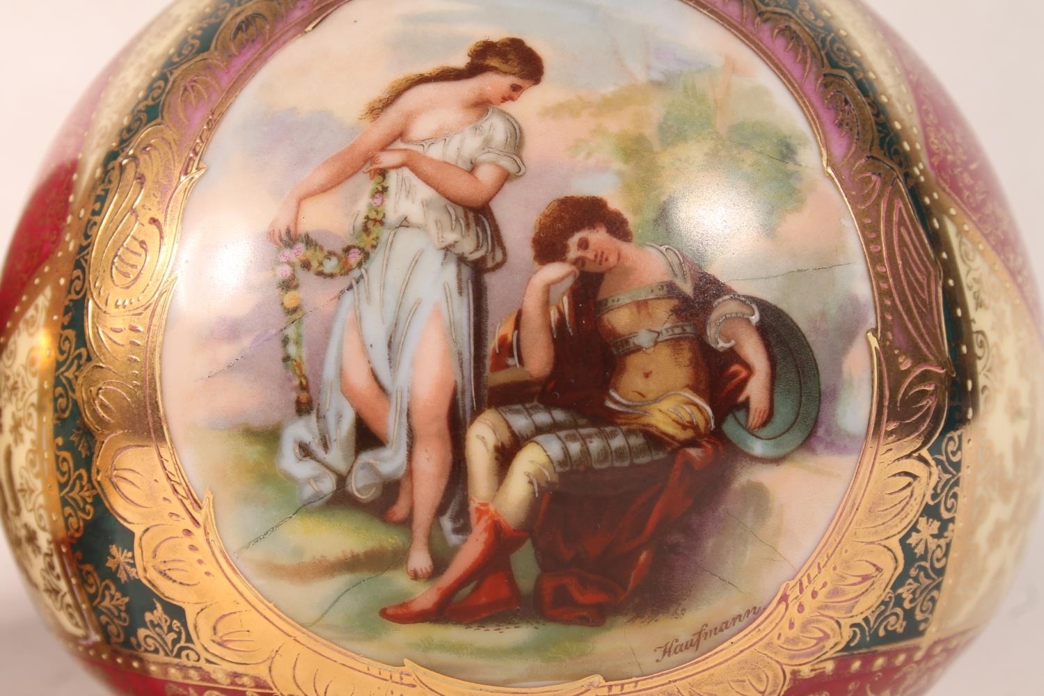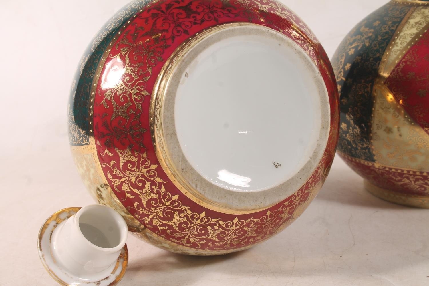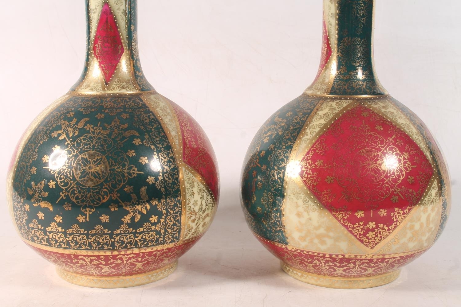 Pair of Austrian Vienna style porcelain bottle vases, 35cm h...