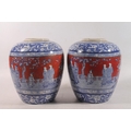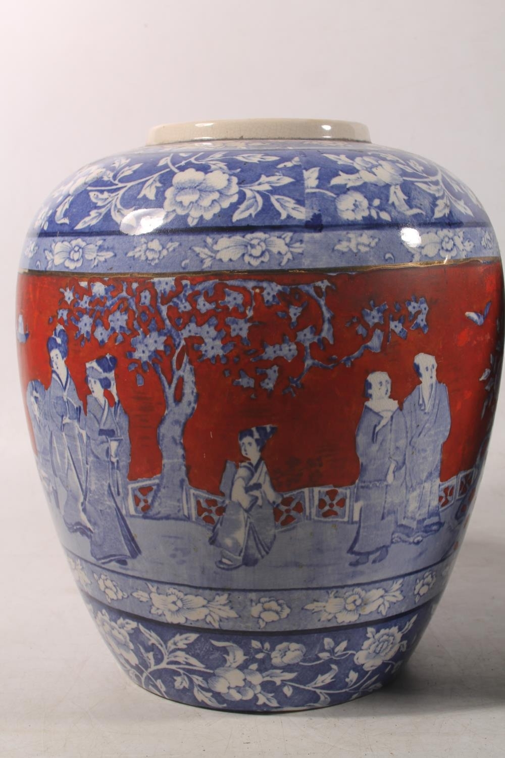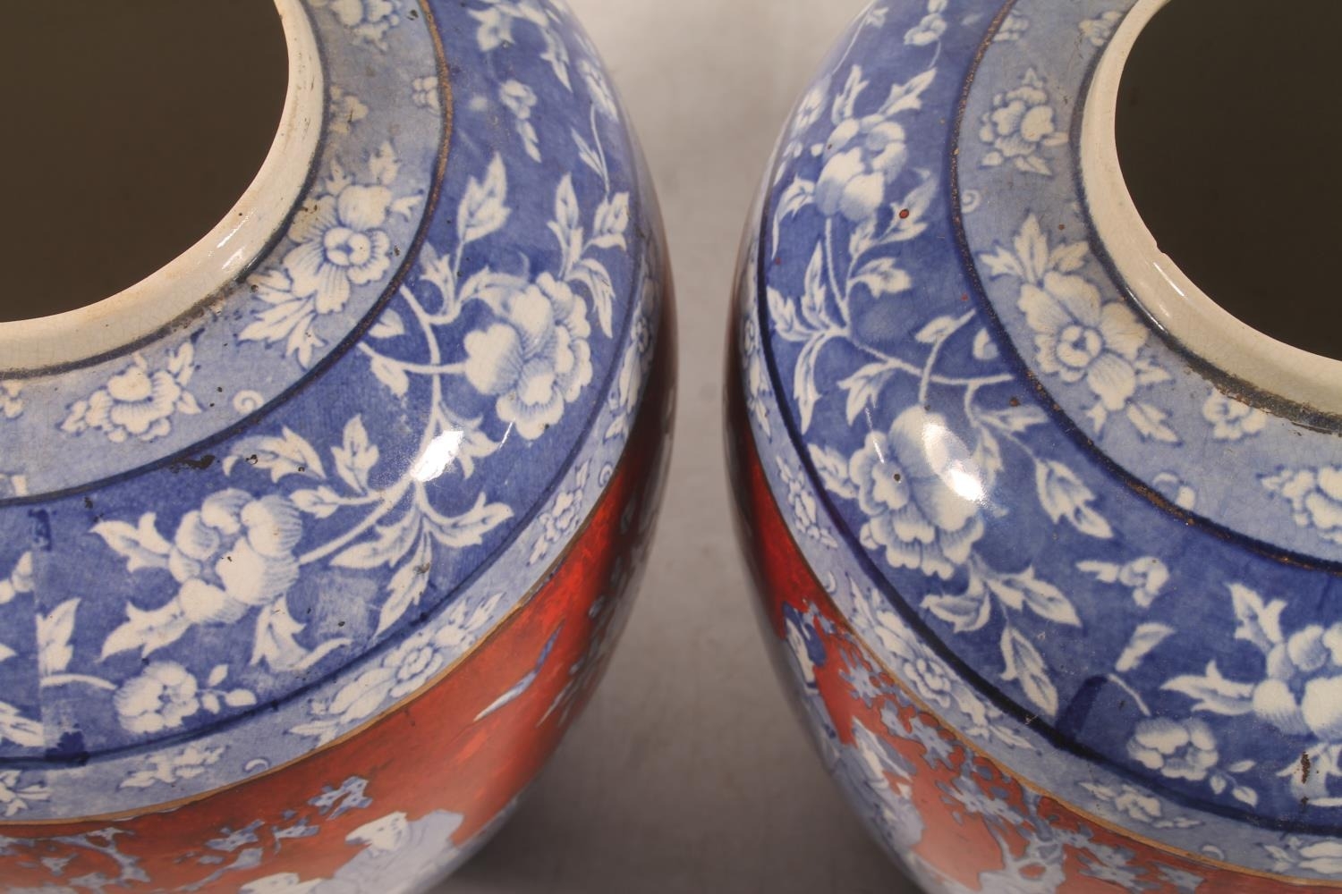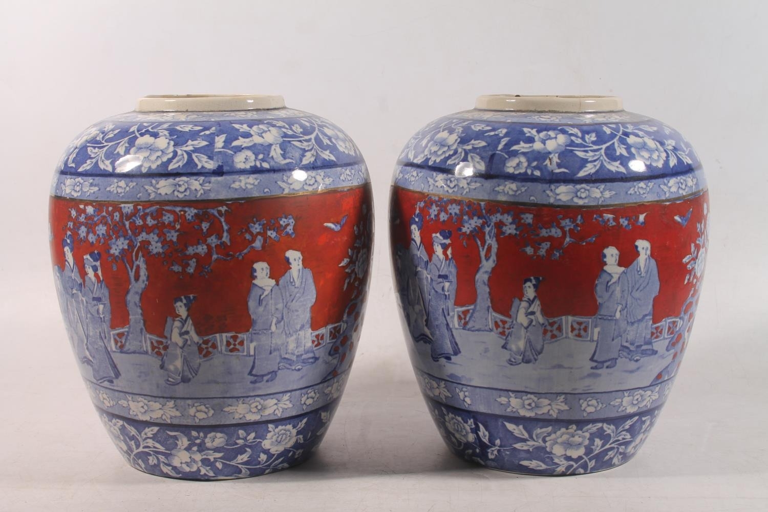 Pair of EPC of Stoke-on-Trent transfer printed baluster vases of ginger jar form decorated with oriental scenes, 26cm high.