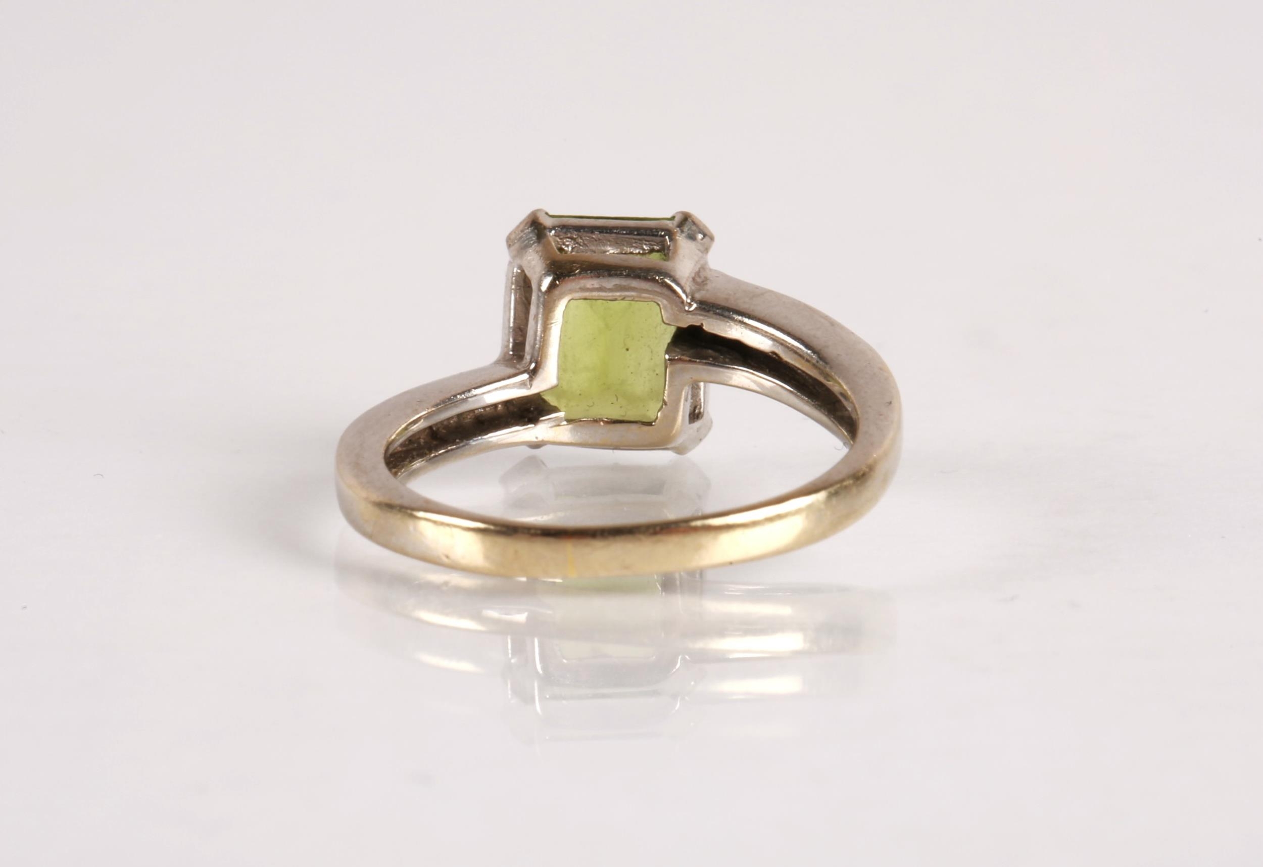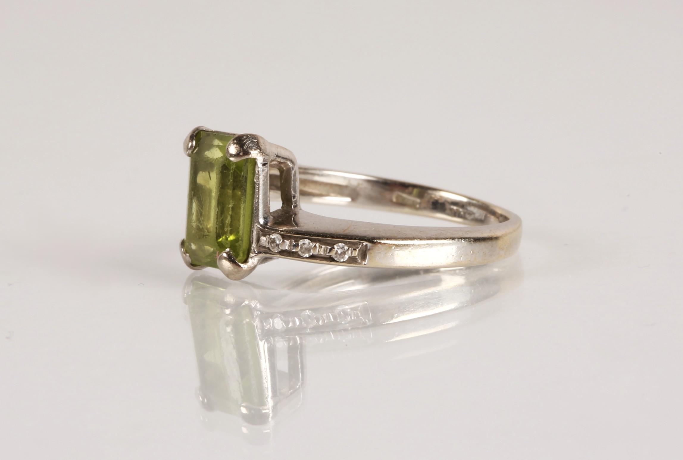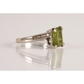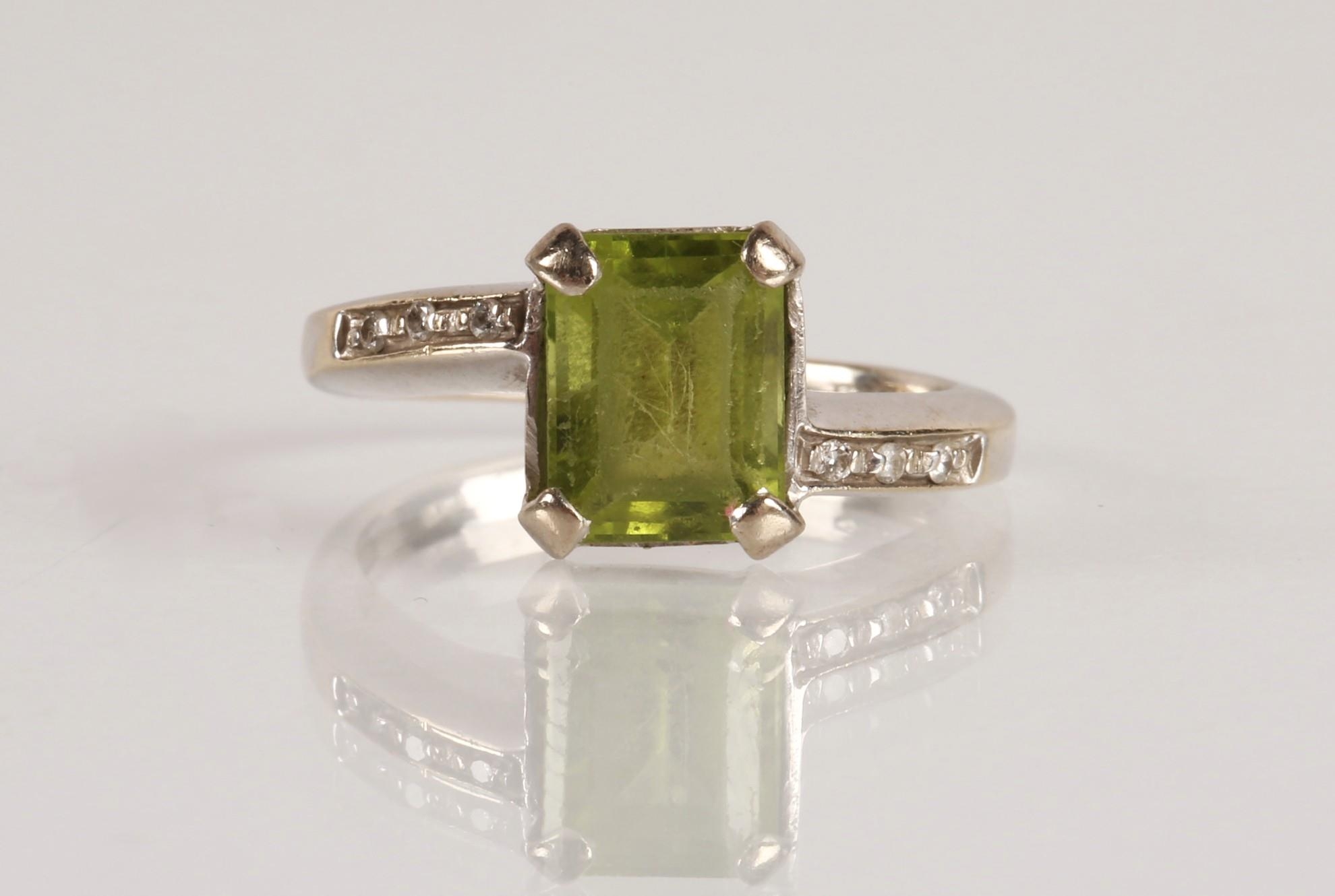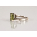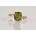 Ladies 18ct white gold emerald cut peridot ring, ring size N/O, gross weight 5 grams