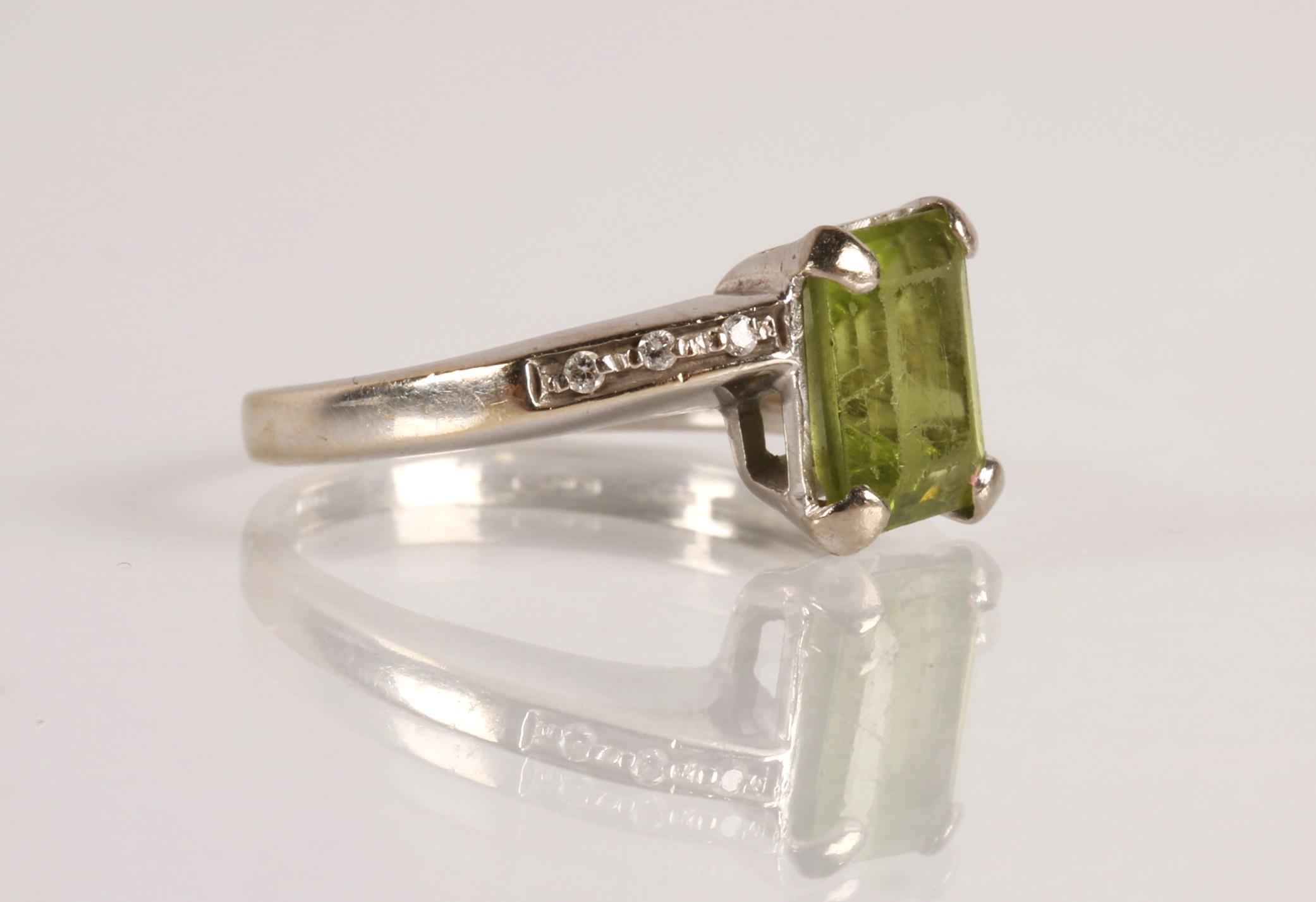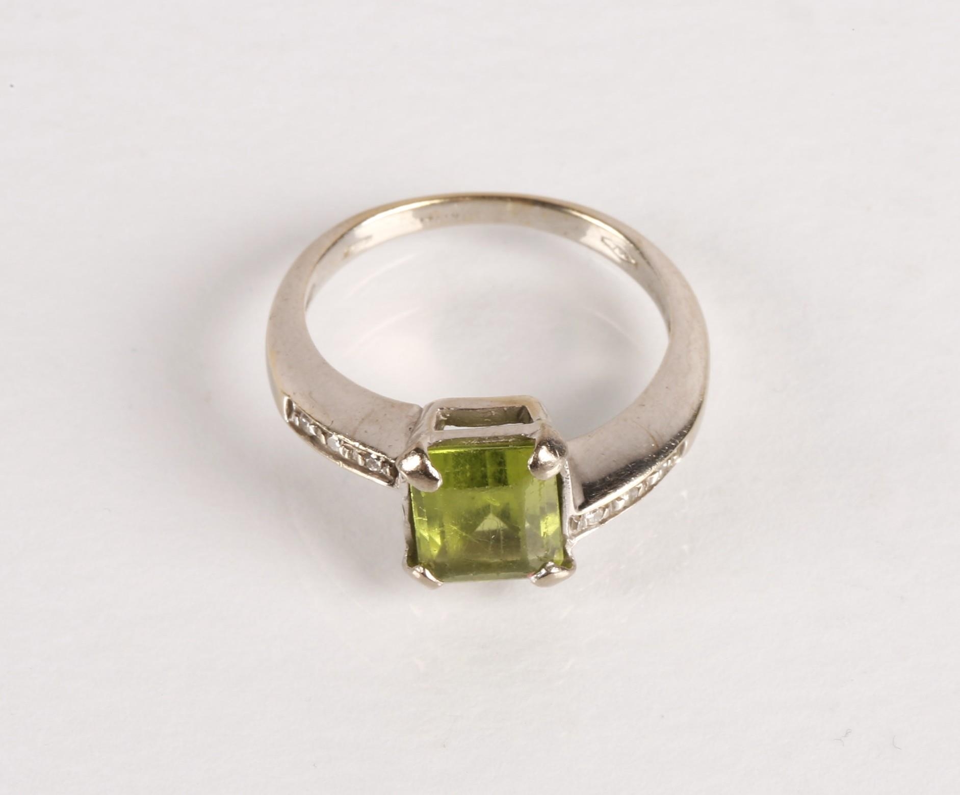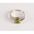 Ladies 18ct white gold emerald cut peridot ring, ring size N...