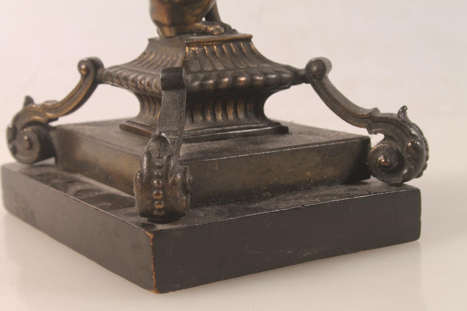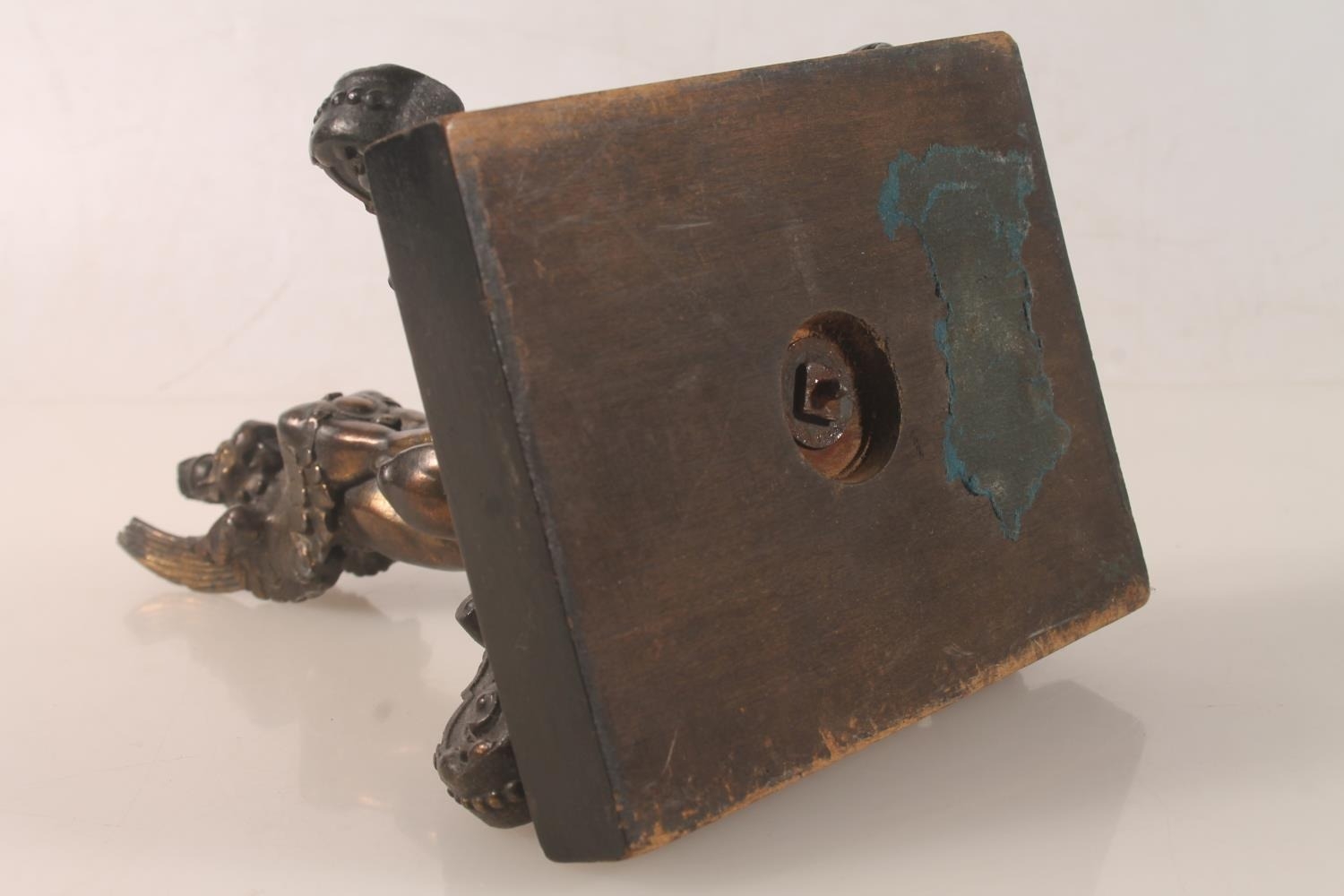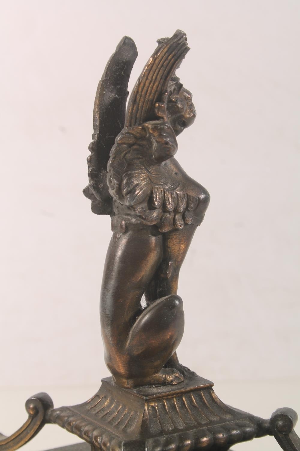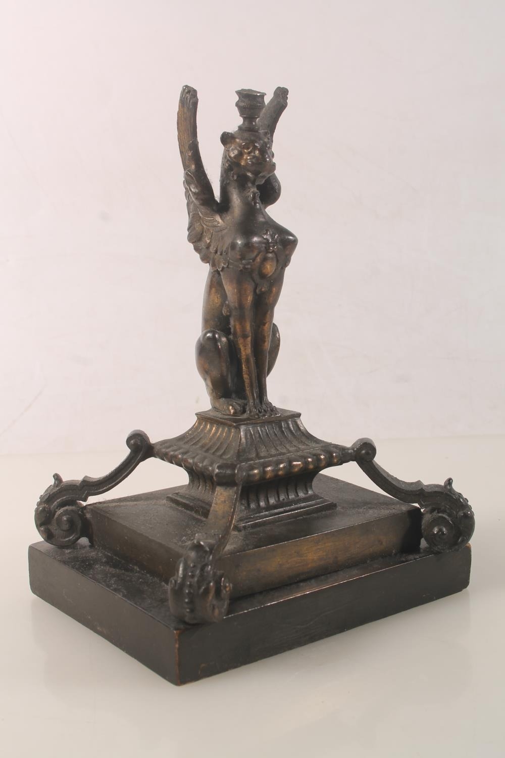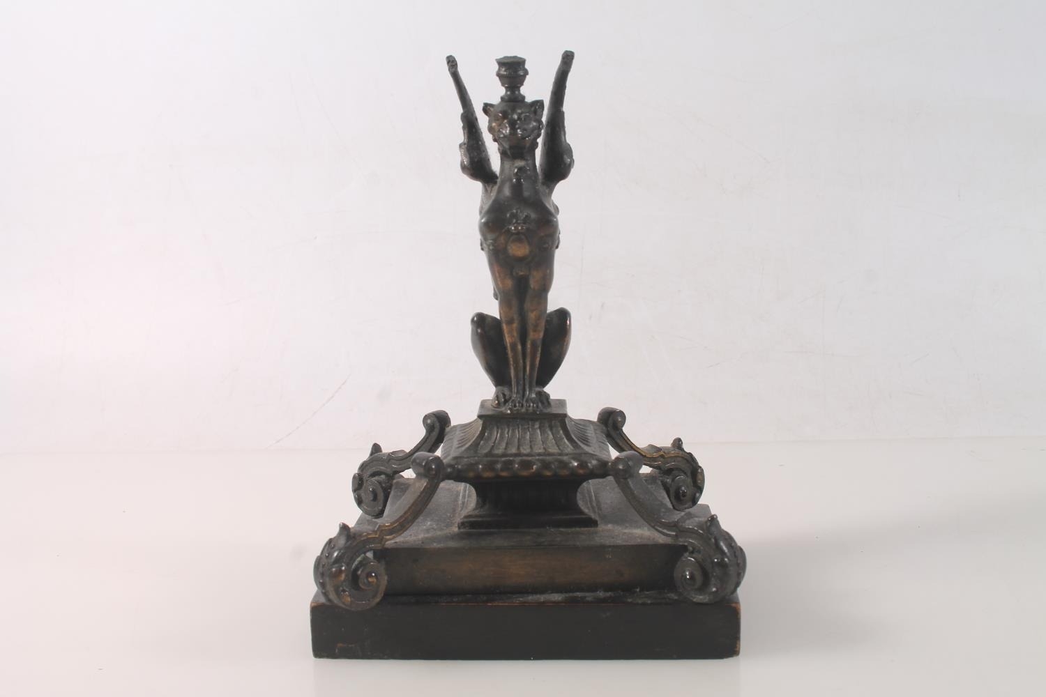 Bronzed metal model of a griffin raised on plinth, 18cm high...