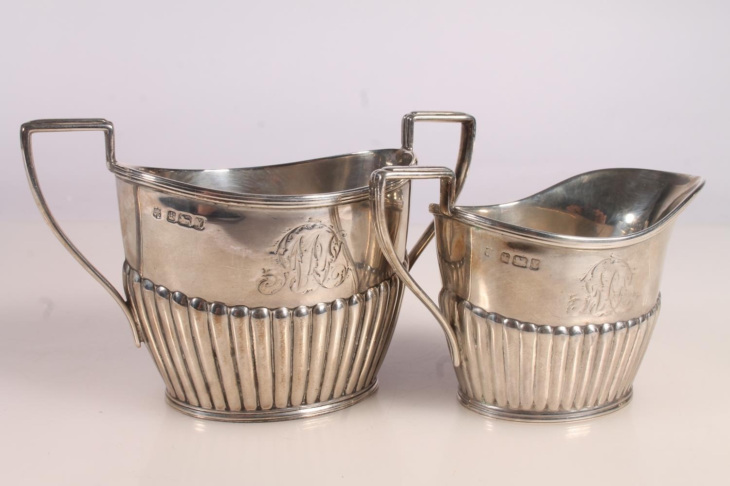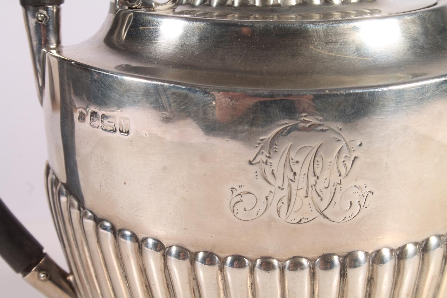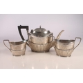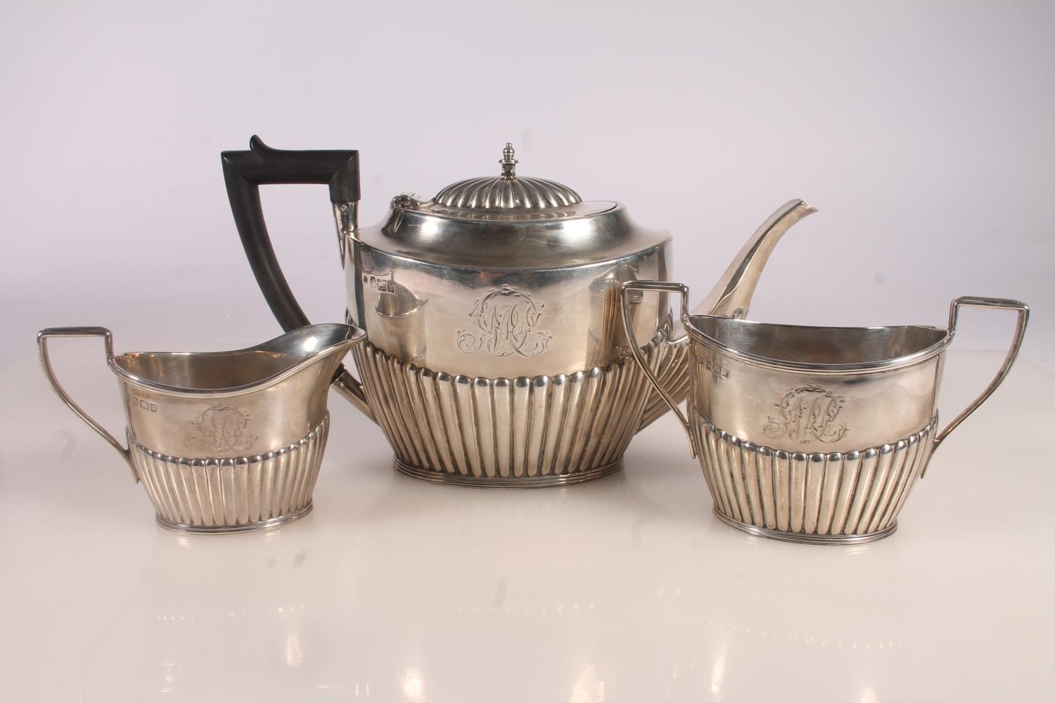 Victorian three piece silver tea set, the half lobed bodies with angular handles, James Deakin and Sons, Sheffield 1891, gross 585g.